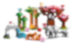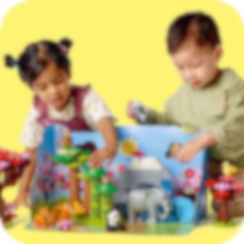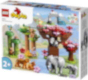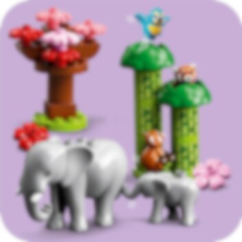 Aasian villieläimet ‑setti saa pienet eläinten ystävät suorastaan villiintymään. Setti sisältää upeita eläinhahmoja, kuten norsuemon poikasineen, pandoja, tiikereitä, apinan, 2 lintua ja 2 kultapandaa, sekä bambu‑ ja kirsikkapuun ja 3-ulotteisen viidakkoaiheisen leikkialustan. Äänipalikan toistamat luonnon ja eläinten äänet tuovat leikkeihin todentuntua.
