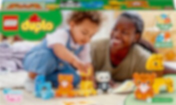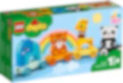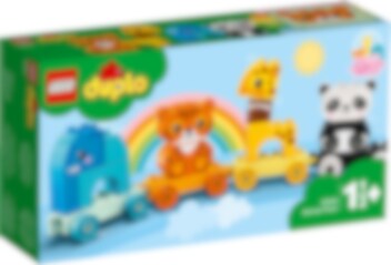 Lapset rakastavat eläimiä! Johdattele taapero eläinten valtakuntaan LEGO® DUPLO® Ensimmäisellä eläinjunallani (10955).Vedettävä eläinparaatileluPienille eläinten ystäville riittää puuhaa norsun, tiikerin, kirahvin ja pandan parissa. Lapset rakentavat, järjestävät vaunuja jonoon, lastaavat eläimiä kyytiin ja pois junasta ja päällekkäin. Samalla hienomotoriikka kehittyy ja lapset tutustuvat mielikuvitusleikkien taianomaiseen maailmaan. Innovatiiviset ominaisuudet, kuten kirahvin heiluva kaula, lisäävät leikkisän oppimislelun tarjoamaa iloa. Rakennuskorteissa on mallien aidonkokoiset kuvat, joiden päälle lapset voivat asetella palikoita rakentaessaan. Lapset voivat myös yhdistää junan muihin pyörillä varustettuihin DUPLO-leluihin.Opettavaisia leluja lapsilleLEGO DUPLO lelut avaavat alle kouluikäisille oven avoimeen, hauskaan itseilmaisun ja iloisen oppimisen maailmaan. DUPLO-leluilla leikkiessään vanhemmat ja taaperot kokevat tärkeät kehitysvaiheet yhdessä.