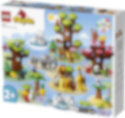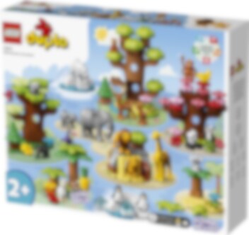 LEGO® DUPLO® Maailman villieläimet (10975) setti on täynnä eläimiä luonnollisessa elinympäristössään sekä aitoja yksityiskohtia, jotka houkuttelevat 2 vuotta täyttäneet lapset hauskojen leikkien pariin oppimaan uutta. Maailman täydeltä luontoleikkejä Lähde perheen pienimpien kanssa maailmanympärimatkalle halki 7 maanosan tutustumaan villieläimiin! Käy katsomassa Aasian pandoja, Afrikan leijonia, Euroopan kauriita, Etelä-Amerikan alpakkaa, Pohjois-Amerikan karhua, Australian koalaa, etelänavan pingviineitä ja moniin muita eläimiä! Äänipalikan toistamat luonnon ja eläinten äänet tuovat leikkeihin todentuntua, ja taitettavassa leikkialustassa on maailmankartta. Tämä setti on hauska ja villin veikeä lahja luonnosta pitäville lapsille. Pienet lapset oppivat leikin varjolla Kaikki LEGO DUPLO setit ovat asiantuntijoiden suunnittelemia ja sisältävät hauskoja tarinoita, kirkkaita värejä, erilaisia hahmoja ja lukuisia yksityiskohtia, joiden avulla pieni oppija saa ISON alun elämään.
