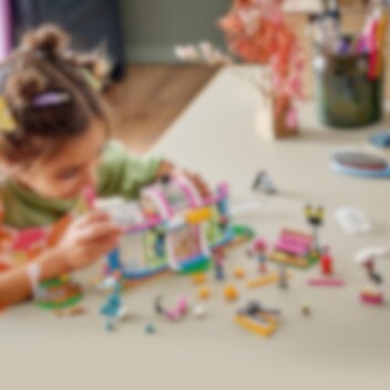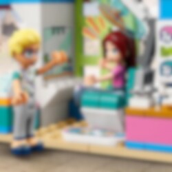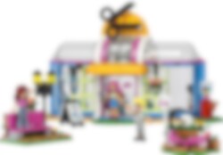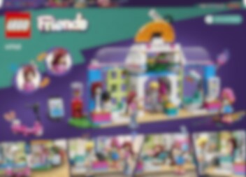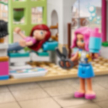 LEGO® Friends Hiussalonki (41743) sopii yli 6-vuotiaiden lasten leikkeihin. Salonkiin voi tutustua Paisleyn ja Ollyn seurassa. Salonkiin liittyvässä tarinassa Paisleyta jännittää leikkauttaa hiuksensa, eikä hän ole varma, mikä tyyli sopisi hänelle parhaiten. Onneksi hänen ystävänsä Olly on mukana auttamassa. Lapset pääsevät leikeissään keksimään, mitä Nadian hiussalongissa tapahtuu, kun Paisley saa uuden tyylin. Salongissa on paljon yksityiskohtia leikkiin: pesu- ja muotoilupaikat salongin sisäpuolella ja purkka-automaatti, potkulautaparkki ja penkki ulkopuolella. Kun Paisley on valmis, hänen hiuksensa ja ilmeensä voi vaihtaa – jolloin hänen uusi tyylinsä paljastuu! Huikeita hupihetkiä LEGO Builder sovelluksen avulla rakentelu sujuu helposti intuitiiviseen rakennuselämykseen uppoutuen. Lapset voivat zoomata ja kiertää malleja 3D-näkymässä, tallentaa settejä ja seurata edistymistä. Heartlake Cityn uusi sukupolvi Lapset saavat uusia ystäviä ja tutustuvat jännittäviin paikkoihin LEGO Friends maailmassa, jossa voi uppoutua oikeasta elämästä tuttuihin tarinoihin.