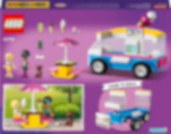 LEGO® Friends Jäätelöauto (41715) on makea herkkupala ruokaleikeistä pitäville rakentelijoille 4-vuotiaasta alkaen. Mukana on LEGO Friends mininuket Andrea ja Roxy sekä söpö koirahahmo. Lapset rakentavat ensin hienon auton ja leikkivät sitten myyjää, joka valmistaa herkullisia jäätelöannoksia, tai kaveruksia, jotka viettävät aikaa tarjoilualueella. Täydellinen lahja 4 vuotta täyttäneille 4+-lelusetit on suunniteltu niin, että rakentaminen on lasten leikkiä. Hienon auton voi rakentaa kokoamalla palikat tukevaan aloituspalikkaan. Leikit pääsevät heti vauhtiin, sillä jokaisessa palikkapussissa on hahmo ja rakennelma. Vaikka lapset eivät juuri tarvitse apua rakenteluun, digitaaliset rakennusohjeet ovat silti käytettävissä ilmaisessa LEGO Building Instructions sovelluksessa. Niillä kaikenikäiset rakentelijat voivat zoomata, kiertää ja tarkastella rakentamaansa mallia erityisessä haamutilassa uppoutuessaan rakenteluun.