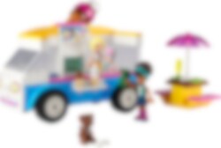 Pysäytä LEGO® Friends Jäätelöauto ja osta viileitä herkkuja. Haluatko jäätelön vai mehujään? Maksa tilaus kassalla, niin Roxy valmistaa sen. Liity Andrean ja Dashin seuraan pöytään ja palkitse kiltisti odottanut koiranpentu luulla.