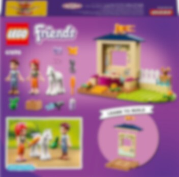 Tallin poninpesupaikka (41696) on mahtava yllätys pienille eläinten ystäville, ja se avaa oven LEGO® Friends maailmaan. Värikäs setti auttaa yli 4-vuotiaita lapsia rakentelun alkeissa. Leikeissä lapset osallistuvat erilaisiin maatilan töihin ja hoitavat ponihahmoa Mian ja Danielin mininukeilla. Hauskempaa rakentamista LEGO 4+ setit sisältävät fiksuja yksityiskohtia, jotka takaavat, että rakentelu sujuu nopeasti ja on hauska elämys. Mukana on kätevä aloituspalikka, tukeva alusta, jonka päälle lapset voivat rakentaa lelusetin. Selkeiden paperiohjeiden lisäksi mukana on interaktiiviset, digitaaliset ohjeet, joiden avulla rakennettavaa mallia voi zoomata, kiertää ja tarkastella samalla, kun rakentaa. Digitaaliset ohjeet löytyvät ilmaisesta LEGO Building Instructions sovelluksesta, jonka voi ladata älypuhelimille tai tabletille. Maailma tutuksi leikin lomassa Lapsille suunnatut LEGO Friends lahjat sisältävät hahmoja, joihin voi samastua ja jotka innoittavat lapset mielikuvitusleikkeihin tosielämän tapahtumista arjen sankareiden seurassa.