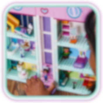 LEGO® Gabbyn nukketalo (10788) on kattoa myöten täynnä leikkejä ja hupihetkiä yli 4-vuotiaille. Ilahduta DreamWorks Animationin TV-sarjan faneja ikiomalla 8 huoneen talolla. Paljon tutkittavaa kaikissa kerroksissa Gabbyn nukketalossa on 8 värikästä huonetta, joiden välillä voi liikkua hissillä. Jokaisessa huoneessa on yllin kyllin kivaa puuhaa. Lapset voivat leipoa kakun keittiössä, leikkiä liukumäessä pelihuoneessa, antaa luovuuden loistaa askarteluhuoneessa, soittaa pianoa musahuoneessa, rentoutua kylpyhuoneessa, ottaa päiväunet makuuhuoneessa tai suunnata katolle ja tanssahdella pyörivällä tanssilattialla. Lasten seikkailuissa on mukana 4 TV-sarjasta tuttua hahmoa: Gabby, Pandi Pörrö, Hile ja Merikatti. Pakkaus sisältää kuvitetut, tarinaan perustuvat rakennusohjeet, ja LEGO Builder sovelluksesta löydät intuitiiviset zoomaus‑ ja kiertotyökalut. Ison aloituspalikan avulla hauskan rakentelun pariin pääsee heti. Hupihetkiä koko perheelle 4+-settien parissa aikuiset ja lapset saavat uppoutua yhdessä hauskoihin rakenteluhetkiin ja kokevat yhdessä lasten tärkeitä kehitysaskelia.