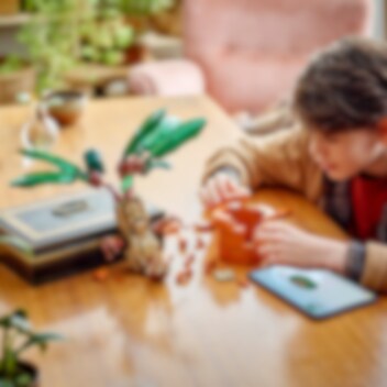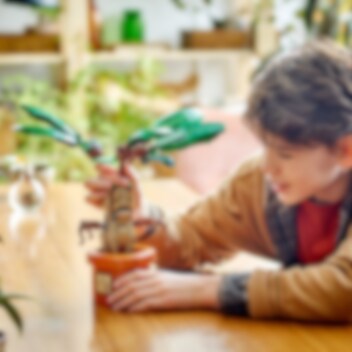 LEGO® Harry Potter Alruuna kasvilelu (76433) tuo Tylypahkan linnan yrttitiedon oppitunnin ihmeet lasten leikkeihin. Kirkuva kasvi on nyt ensimmäistä kertaa ikuistettavissa LEGO palikoilla. Setti saa mielikuvituksen lentoon, ja se on mahtava lahja‑ ja sisustusidea tytöille, pojille ja kaikille yli 10-vuotiaille Harry Potter ‑faneille. Settiin kuuluu lähes aidonkokoinen alruunahahmo ja rakennettava kukkaruukku, joista syntyy leikkisä koriste-esine. Taivuttele alruunan lehtiä, nosta se ruukusta ja liikuta rintaa ylösalaisin, niin kasvin suu ja raajat tekevät huutamisliikkeitä. Lasten luova elämys saa lisää ulottuvuuksia LEGO Builder sovelluksessa, jossa rakentelijat voivat zoomata ja kiertää malleja digitaalisessa 3D-näkymässä, seurata edistymistään ja tallentaa settejä. Ihastuttava kodin sisustusidea ja epätavallinen taikuutta pursuava leluolento kuuluu laajempaan LEGO Harry Potter tuotesarjaan (setit myydään erikseen), joka sisältää lukemattomia erilaisia rakennelmia ja leikkejä lumoaviin tarinoihin.