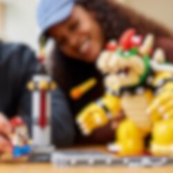 Koopien kuningas valmiina rakenteluun, leikkiin ja koristeeksi! Hallitse Mahtavan Bowserin pään ja niskan liikkeitä ja käynnistä tulipallolaukaisin. Laita pienoismalli esille taistelualustan päälle. Siinä on 2 kaadettavaa tornia ja piilotettu POW-kuutio. Voit yhdistää Mahtavan Bowserin myös LEGO® Super Mario aloitusrataan (myydään erikseen) ja taistella LEGO® Mariota, LEGO® Luigia tai LEGO® Peachia vastaan.
