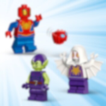 Green Goblin on napannut Spideyn Trace-E-bottikaverin! Pahis pötkii pakoon liiturillaan, mutta Ghost-Spider sinkauttaa ison kultaisen seitin roiston niskaan. Spidey hyppää ilmatyynymenopelinsä kyytiin ja lähtee takaa-ajoon veden pinnalla liitäen. Ehtivätkö sankarit saamaan Green Goblinin ajoissa kiinni ja pelastamaan Trace-E:n? Vai saavatko he niskaansa kurpitsapommeja? Spideyn ja Green Goblinin toimintaleikkejä yli 4-vuotiaille.