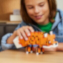 Rakenna vaikuttava Minecraft-kettu näytille! Kettu (21588) on suuri, yksityiskohtainen hahmo, jolla on liikkuvat jalat, kääntyvä kaula ja pää, jolla voi esittää ketun silmät joko auki tai kiinni. Aseta se seisomaan valppaana, istumaan pää kallistettuna tai makaamaan nukkuvana. 497 osaa Minecraft-faneille ja rakentajille 10-vuotiaista alkaen.