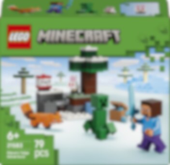 Vie Steve seikkailuun Minecraftin taigabioomiin! Steves taiga-seikkailu (21583) on pieni Minecraft-setti, joka on täynnä taisteluita, aarteenetsintää ja räjähtävää leikkiä. Steve kaivaa timantteja esiin timanttimiekkansa avulla ja räjäyttää kiviä irti TNT:llä. Varo kuitenkin vaanivaa Creeperiä! Setti sisältää Steve-minihahmon sekä Creeper-, kettu- ja vauvakanihahmot. 79 osaa. Ikäsuositus: 6+.