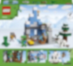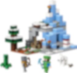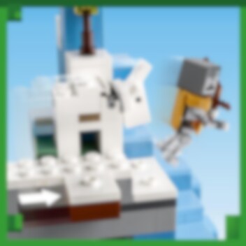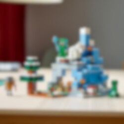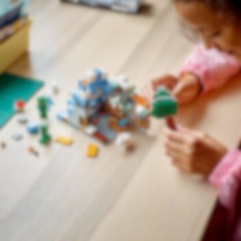 LEGO® Minecraft® Jään peittämät huiput (21243) setti on täynnä konkreettisia yksityiskohtia ja toimintoja, joiden parissa 8 vuotta täyttäneet pelaajat saavat yllin kyllin vauhdikkaita Minecraft-hupihetkiä. Rakenna, taistele, tutki ja räjäytä! Jään peittämät huiput ja Taiga-metsä ovat tuttujakin tutumpia paikkoja Minecraft-pelaajille. Kaikki Minecraft-taidot ovat tarpeen, kun syvältä jään uumenista louhitaan hiiltä, rautaa ja smaragdeja. Ennen kuin alat louhia aarteita, rakenna maja ja kerää ruokaa! Jos Creeper ja harhailija pääsevät yllättämään, pakenetko tippukiviluolan kautta, räjäytätkö vuoren TNT:llä päästäksesi majan suojaan vai houkutteletko hahmot vuohen avulla kallionkielekkeelle? Monet hauskat toiminnot ja realistiset tarvikkeet innostavat loputtomiin Minecraft-seikkailuihin. LEGO Builder sovelluksen intuitiivisilla zoomaus‑ ja kiertotyökaluilla lapset hahmottavat rakentamansa mallit. Työkalut tuovat elämykseen hauskan digitaalisen ulottuvuuden.