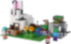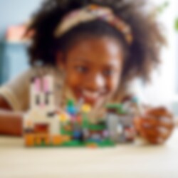 Yli 8-vuotiaat Minecraft®-pelaajat ja kanifanit innostuvat loputtomista luovista leikeistä LEGO® Minecraft Kanitilalla (21181). Rakentelua, taisteluja ja kanien hoitoa Lapset rakentavat valtavan kaninmuotoisen maatilan, jolla he pääsevät hoitamaan Minecraft-kaneja. Rakennelman takaosa on avoin, ja siinä on nostettava katto, joten huonekalut on helppo järjestää ja leikkejä mielikuvitusleikkejä talon sisätiloissa. Ulkona on kaksi kania, joita voi ruokkia viereisellä maatilalla kasvatetuilla porkkanoilla. Kani pomppii, kun sen selässä olevaa vipua kääntää. Läheinen luola on mahtava piilopaikka zombille, Minecraftista tutulle viholliselle. Se täytyy karkottaa miekalla, jotta voi palata rakkaiden pupujen pariin. Monipuolisten rakentelumahdollisuuksien setti innostaa loputtomiin leikkeihin, ja lapset pääsevät uppoutumaan Minecraftin hauskoihin seikkailuihin tosielämässä.