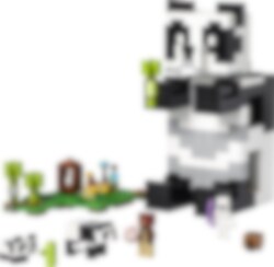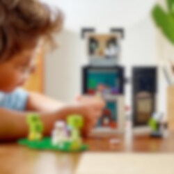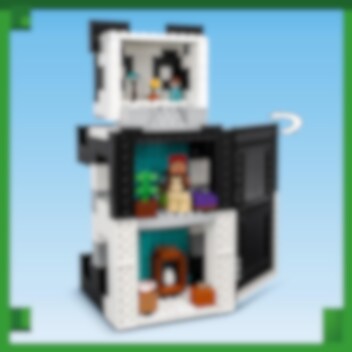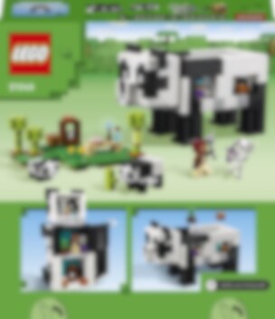 LEGO® Minecraft® Pandatalo (21245) on huikean hauska lelu pandoista pitäville Minecraft-pelaajille. Jättimäinen panda muuntautuu kalustetuksi taloksi, joka saa kaikki pelaajat 8-vuotiaasta alkaen ilahtumaan. Pandaa esittävä talo, joka liikkuu kuin panda Rakennettavassa 3-kerroksisessa, pandaa esittävässä talossa on avattava taustapuoli, joten lapset voivat tutkia tarkemmin sisäpuolen kalustettuja huoneita. Nivelletyn rakennelman päässä on sarana, joten pandatalon voi laittaa pystysuoraan tai neljän jalan varaan ja muuttaa huonekalujen järjestystä vastaavasti. Mukana on myös hahmoja, kuten viidakkotutkija, panda, pikkupanda ja vihamielinen luuranko, jota vastaan voi taistella. Rakennelmaa ympäröi bambuviidakko, jossa pelaajat voivat uppoutua tuttuun Minecraft-toimintaan ja syöttää pandoille kakkua. LEGO Builder sovelluksen intuitiivisilla zoomaus‑ ja kiertotyökaluilla lapset hahmottavat rakentamansa mallit. Työkalut tuovat elämykseen hauskan digitaalisen ulottuvuuden.