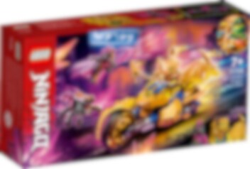 LEGO® NINJAGO® Jayn kultainen lohikäärmemoottoripyörä (71768) leikkisetti sopii ninjafaneille 7-vuotiaasta alkaen. Lapset voivat sukeltaa NINJAGO: Crystallized ‑TV sarjan huikeisiin juonenkäänteisiin tämän NINJAGO-lelun parissa. Moottoripyörän sivuilla on kultaiset paneelit ja etuosana on lohikäärmeen pää, jonka suun voi avata. Rakennussarja ninjafaneille Ninjamenopelin mukana tulee 2 minihahmoa – Kultaisen lohikäärmeen Jay, joka saa entistä enemmän voimaa kultaisesta nunchaku-elementtiaseestaan ja kultaisista piikikkäistä lohikäärmeensiivistään, ja Kaunankivisoturi miekkoineen ja kristallihämähäkkeineen. Lasten avulla Kultaisen lohikäärmeen Jay suojelee NINJAGO Cityä hyökkäykseltä. Keräilylelut siivittävät lasten leikit uusiin maailmoihin! NINJAGO-lelut tempaisevat lapset pois ruutujen ääreltä jännittäviin, mielikuvituksen värittämiin toimintaleikkeihin. Lapset pääsevät liittymään urheiden ninjasankareiden joukkoon ja taistoon pahuuden voimia vastaan upeiden rakennussettien parissa. Setit sisältävät robotteja, autoja, suihkareita, lohikäärmeitä ja temppeleitä.