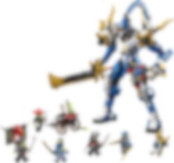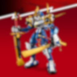 Valmistaudu eeppiseen taisteluun: Tämä on Jayn kaikkien aikojen tehokkain robotti. Jay ja hänen ninjasoturikumppaninsa Nya käyvät titaanirobotilla 3 vaarallisen vihreän luusoturin kimppuun. Varo! Luukuningas, Luuritari ja Luumetsästäjä aikovat päihittää heidät tehokkaalla kaksirunkoisella varsijousella. Siihen ladataan 4 nuolta, jotka ammutaan jalustalta. Taistele robotin suurta lohikäärmeterää, 2 katanaa ja 2 nuppipyssyä vastaan. NINJAGO® City täytyy pelastaa hyökkäykseltä!