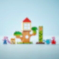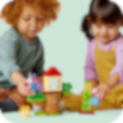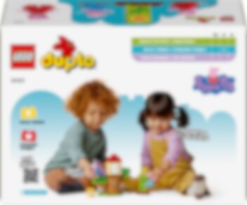 2 vuotta täyttäneet lapset innostuvat ulkoilmaelämästä LEGO® DUPLO® Pipsa Possun piha ja puumaja (10431) setin parissa. Hauska lelusetti ruokkii leikki-ikäisten tyttöjen ja poikien luontosuhdetta, sillä lapset voivat auttaa Pipsaa ja Jyriä kasvattamaan puutarhassaan auringonkukan. Uudelleenrakennettavassa setissä on paljon hauskoja tarvikkeita, jotka innostavat pieniä Pipsa Possun faneja. Mukana ovat esimerkiksi kastelukannu ja talikko. Lapset pääsevät harjoittelemaan hienomotorisia taitojaan sekä yhdistämään ja lajittelemaan palikoita. Lelukasvi kasvaa, kun lapset pinoavat palikoita. Sen jälkeen 2 hahmoa voivat leikkiä piilosta puunrungon ympärillä ja ottaa rennosti puumajassa. Opettavainen LEGO DUPLO Pipsa Possu lelusetti sopii leikki-ikäisille lapsille, ja se tukee monien taitojen kehittymistä. Kukkaa kasvattaessa opitaan ongelmanratkaisua ja sinnikkyyttä, ja leikeissä Pipsan ja Jyrin hahmoilla opitaan ympäristön huomioimista ja ilmaisutaitoja. Hahmot suorittavat yhdessä tehtäviä ja leikkivät puutarhassa.