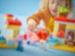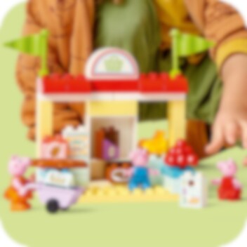 2 vuotta täyttäneet lapset voivat leikkiä kauppareissua LEGO® DUPLO® Pipsa Possun supermarket setillä (10434). Leikki-ikäiset lapset pääsevät perheen kanssa kauppareissulle sarjasta tutulla punaisella autolla. Lapsille tarkoitettu, aina uudelleen rakennettava lelusetti on täynnä tarvikkeita, jotka innostavat luoviin leikkeihin. Mukana on 4 hahmoa: Pipsa Possu, Jyri, Äitipossu ja Isäpossu, joten lapset pääsevät leikkimään sekä vanhempien että lasten hahmoilla. Leikki-ikäiset tunnistavat oikeasta kaupasta tuttuja tarvikkeita, kuten itsepalvelukassan, ostoskärryn ja pakastealtaan. Pipsa Possu ‑aiheinen LEGO DUPLO opetuslelu sopii leikki-ikäisille lapsille TV-sarjasta tutun kaupparetken leikkeihin. Setti kehittää lasten taitoja, kuten loogista ajattelua. Perheet pääsevät myös puhumaan tunteistaan leikin keinoin. Tuttujen tapahtumien kautta lapset ja aikuiset voivat jutella siitä, miten kaupassa käyttäydytään ja – ennen kaikkea – kuka saa työntää ostoskärryä!