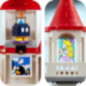 Tutustu hauskoihin haasteisiin Peachin linnassa! Tönäise Ludwig alas pilveltä, korjaa rikki mennyt silta ja tervehdi Toadettea. Etsi maalauksen taakse piilotettu toimintotunniste ja saat bonuksen Bob-ombin päihittämiseen. Maista kakkua (mutta varo, sen sisällä on Goomba!) ja nappaa violetti hedelmä. Hyppää aikakuution päälle ja etsi Bowser, joka piileksii valtaistuimen takana. Päihitä Bowser kieräyttämällä se ympäri!