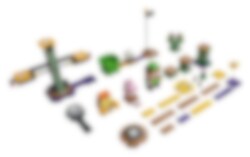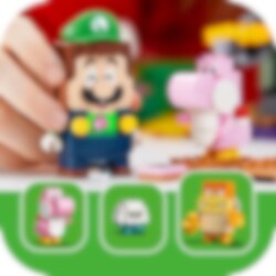 Hyppää LEGO® Super Marion™ maailmaan (tai laajenna sitä) tämän jännittävän aloitusradan avulla! Katso, miten LEGO® Luigi™ reagoi pinkkiin Yoshiin, Boom Boomiin ja Luu-Goombaan rakentamillasi luovilla pelitasoilla. Pyöri, keinu ja lennä keräämään kolikoita. ?-kuutiosta saat supervoimia. Ota peliin mukaan ystävä tai perheenjäsen LEGO® Mario™ hahmoineen, sillä tiiminä on hauska pelata ja kerätä bonuskolikoita!