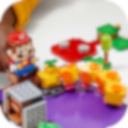 Kohtaa Wiggler soodaviidakossa tässä vauhdikkaassa laajennussarjassa, joka täydentää LEGO® Super Mario™ Aloitusrataasi! Avaa salainen silta keikuttamalla ja iskemällä Wiggleriä. Varo Goombaa, joka piileskelee sillan alla. Välttele myrkkysuota käyttämällä pyörivää tasoa ja lauttaa. Hanki mahtavia voimia Supertähti-kuutiolta ja viimeistele eeppinen matkasi voittamalla Koopa Paratroopa!