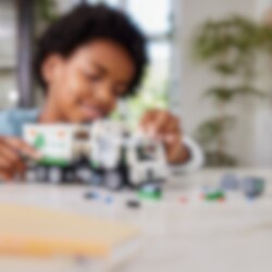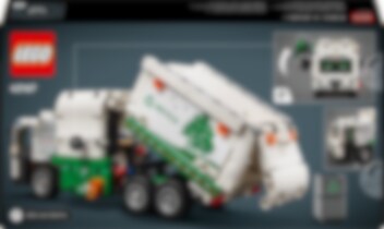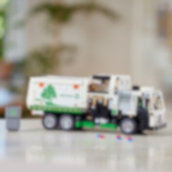 LEGO® Technic Mack® LR Electric Jäteauton avulla pidät kaupungin puhtaana. Oikea Mack-jäteauto toimii sähköllä, joten roskien noutaminen hoituu luontoystävällisesti. Haluatko laittaa pienoismallin tositoimiin? Avaa ovet, hyppää ohjaamoon kuljettajan paikalle ja aja kohteeseen. Nosta ja kippaa jäteastiat sivussa olevan mekanismin avulla. Jatka sitten kierrosta seuraavaan paikkaan.