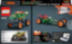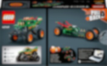 Vetomoottorilla varustetun LEGO® Technic Monster Jam Dragon (42149) monsteriauton yli 7-vuotiailla Monster Jam ‑faneilla riittää yllin kyllin tutkittavaa. Autossa on upeat lohikäärmeen piikit ja sarvet sekä realistiset kuviot ja värit. Tämän leluauton parissa lapset voivat uppoutua oikeilta Monster Jam ‑areenoilta tuttuihin juttuihin. Leikit yltyvät 2-in-1-lelulla Kun leikeissä kaivataan jotain uutta, lapset voivat rakentaa Monster Jamin 2-in-1‑mallista Krokotiilikirpun. Vetomoottorin avulla menopelin voi sinkauttaa radalle kisatunnelmiin tai oikeilta Monster Jam ‑areenoilta tuttuihin temppuihin. Hieno johdatus tekniikkaan LEGO Technic rakennuslelut sisältävät realistisia liikkeitä ja mekanismeja. Ne tutustuttavat LEGO rakentajat tekniikan maailmaan helposti lähestyttävällä ja aidolla tavalla. LEGO Builder sovelluksen avulla rakentelu sujuu helposti intuitiiviseen rakennuselämykseen uppoutuen. Lapset voivat zoomata ja kiertää malleja 3D-näkymässä, tallentaa settejä ja seurata edistymistä.