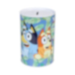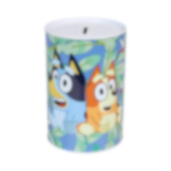 Säästöpossu kauniilla Bluey ja Bingo -kuvalla. Täydellinen lahja kaikille Bluey-faneille! Huomaa, että säästöpossua ei voi avata, joten rahat ovat turvassa, kunnes on aika tyhjentää se.