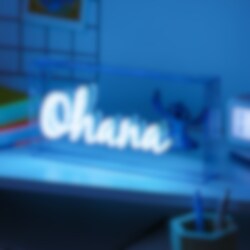 Valaise huone tällä ihanalla Neon LED-lampulla. Siinä on Stitchin suosikkisana "Ohana" ja se loistaa kauniin sinisenä päällä ollessaan. Täydellinen kaikille Stitch-faneille. Lamppu voidaan sijoittaa pöydälle tai kiinnittää seinään – luo ainutlaatuinen ja viihtyisä tunnelma.