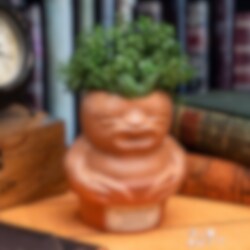 Ruukku, joka kuvaa Harry Potter -sarjan Mandrake-kasvia. Hauska esine käytettäväksi kynätelineenä tai miksi et istuttaisi tavallisia kasveja tähän ruukkuun? Jos aiot käyttää ruukkua istutukseen, käytä vain sisäkasveja, sillä ruukussa ei ole tyhjennysaukkoa.