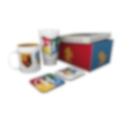 Erittäin hieno Harry Potter -lahjapakkaus, jossa on neljän opiskelijatalon vaakunat. Hauska lahja kaikille Harry Potter -faneille. Pakkaus sisältää posliinimukin, juomalasin ja 2 lasinalustaa pakattuna ainutlaatuiseen lahjapakkaukseen.