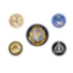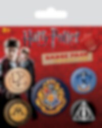 5 kpl rintamerkeja klassisella Harry Potter teemalla. Hauska laittaa juhlapussiin, kun on aika juhlalle tai koristeeksi esimerkiksi reppuun. 4 kpl rintaneuloja n. 2,5cm halkaisijalla ja 1 n. 3,8 cm halkaisijalla.