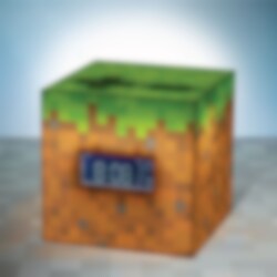 Upea herätyskello, joka esittää maata ja ruohoa olevaa kuutiota suositusta Minecraft-pelistä. Paina päällä olevaa painiketta, jotta herätyskello soittaa pelin virallista musiikkia ja valo syttyy. Hauska kello, joka saa kenet tahansa heräämään iloisena.