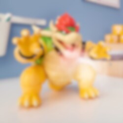 Tämä vaikuttava Bowser-keräilyhahmo Super Mario Bros -sarjasta on 18 cm korkea – täydellinen kaikille faneille. 14 liikkuvan pisteen ja tuliefektin ansiosta tämä hahmo on jännittävä lisäys kokoelmaan. Täydellinen lahjaksi tai huoneen sisustamiseen.