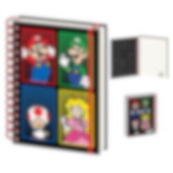 Astu Super Mario Brosin värikkääseen maailmaan tämän ainutlaatuisen A5-muistikirjan avulla! Tässä muistikirjassa on ikonisten Mario-, Luigi-, Peach- ja Toad-hahmojen kuvat, ja se sopii täydellisesti ajatusten, luonnosten tai arjen seikkailujen kirjaamiseen.