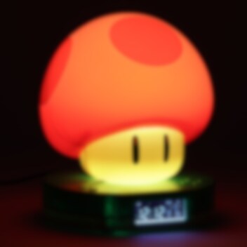 Herää Super Marion ääniin joka aamu tällä ainutlaatuisella Super Mushroom -herätyskellolla! Kello on 14 cm korkea ja siinä on tunnelmavalotoiminto, joka luo huoneeseen kodikkaan tunnelman. Yksi jännittävimmistä ominaisuuksista on, että se soittaa virallisia Super Mario -pelien Super Mushroom -ääniä, kun hälytys soi.