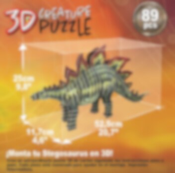 Dinosaurus on noin 52,5 cm pitkä, 25 cm korkea ja 11,7 cm leveä. Sisältää 89 kpl numeroitua palapelinpalaa jossa on jännittävä printtikuvio, sekä ohjeet.
