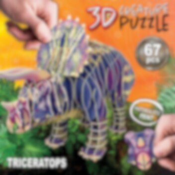 Luo oma 3D-Triceratops! Tällä ainutlaatuisella palapelillä voit luoda oman Triceratopsin 3D:nä seuraamalla pakkauksella olevia ohjeita.