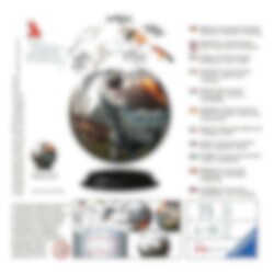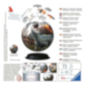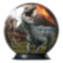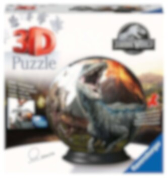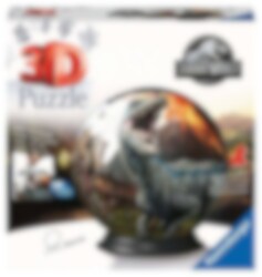 3D-palapeli Jurassic World-teemalla. Palapelin halkaisija on noin 13 cm. Pakkaus sisältää alustan, johon palapelipallo voidaan asettaa. Tähän palapeliin ei tarvita liimaa, vaan voit koota sen paloista.