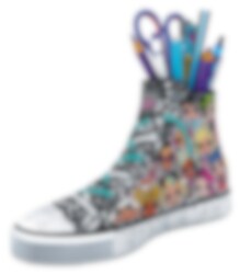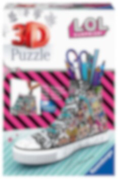 Tennarin muotoinen 3D-palapeli, jossa on LOL Surprise -teema. Voit käyttää tennaria kynätelineenä työpöydälläsi. 3D-palapelin koko on noin 21 x 12 x 8 cm. Tähän palapeliin ei tarvita liimaa, vaan voit vain koota sen paloista.