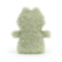 Erittäin suloinen ja pörröinen pieni sammakko pyöreähköllä vartalolla. Hieman sekainen turkki on ihanan vaaleanvihreä. Sammakon kasvoissa näkyy iloinen pieni hymy. Tämä pieni pomppiva kaveri rakastaa halailua. Sillä on suloiset pienet kädet, pehmeä vartalo ja ihana ilme. Tämä pikkuinen söpöläinen sopii melkein minne tahansa – mukaan seuraavaan seikkailuun tai rauhalliseen halihetkeen. Se myös lohduttaa ja tukee tarvittaessa. Käsinpesu ja taso- tai ripustuskuivaus tarvittaessa.