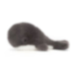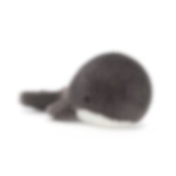Tummanharmaa pehmoinen pieni valas, jolla on valkoinen vatsa, ihanan pehmeä turkki, pyöreä nenä ja ystävälliset silmät. Mahtava pikku kaveri, joka ui valtamerten halki etsien seikkailua. Täydellisen kokoinen mukaan reissuille. Pese tarvittaessa käsin.