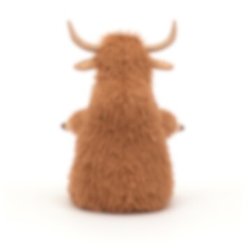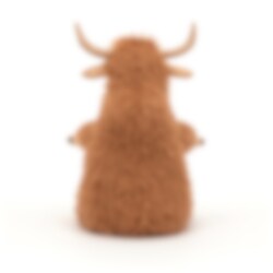 Pullea ja ihanan pörröinen skotlantilainen Ylämaankarja-lehmä istuu ja lepää rankan päivän jälkeen vihreillä niityillä. Paksu punaruskea turkki, iloinen hymy, kaksivärinen kuono, suklaanruskeat sorkat ja hienot kaarevat sarvet mokkanahkajäljitelmästä. Rakas pehmoinen ystävä, jota voi rakastaa. Pese tarvittaessa käsin.