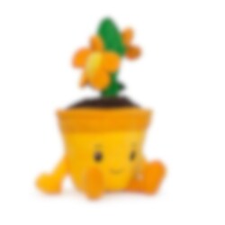 Tämä leikkisä pehmolelu esittää oranssia kukkaruukkua kawaii-tyyliin söpöillä kasvoilla ja pienellä kukalla yläosassa. Lämmin väri ja pehmeät muodot tekevät hahmosta sekä suloisen että huomiota herättävän.