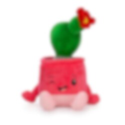 Tämä söpö pehmolelu esittää vaaleanpunaisen kawaii-tyylisen kukkaruukun, jossa on söpöt kasvot ja pieni kaktus päällään. Pehmeän kukkaruukun ja leikkisän kasvin yhdistelmä tekee tästä hahmosta erityisen viehättävän ja ihastuttavan.