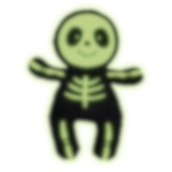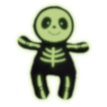 Tämä luurankopehmolelu on leikkisä sekä sopivan pelottava. Valmistettu pehmeästä plyysistä, jossa on pimeässä hohtavia valkoisia yksityiskohtia. Hohtava ominaisuus ladataan helposti sijoittamalla lelu lähelle voimakasta valonlähdettä, kuten esimerkiksi lamppua. Muutaman minuutin kuluttua se hohtaa jopa 30 minuutin ajan.