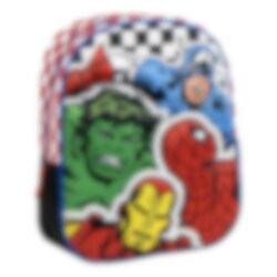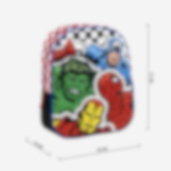 Tämä värikäs lastenreppu 3D-efektillä ja Avengers-teemalla on täydellinen pienille supersankareille liikkeellä! Iron Manin, Hulkin, Spidermanin ja Captain American kuva, ruutukuvioitu yksityiskohta ja 3D-design – siitä tulee nopeasti arjen suosikki. Täydellinen päiväkotiin, leikkitreffeille tai matkarepuksi.