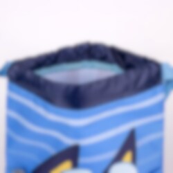 Värikäs jumppakassi, jossa on kuvioita TV-sarjasta Bluey. Täydellinen lapsille, jotka rakastavat seikkailuja tämän sinisen karjakoiran kanssa.