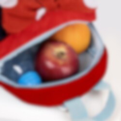 Valmistettu pehmeästä plyysipehmusteesta ja varustettu säädettävillä olkahihnoilla. Koko on noin 22 × 18 × 8 cm. Täydellinen pehmolelulle, kirjalle tai pienelle välipalalle.