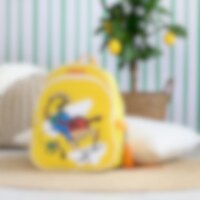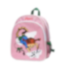 Laukussa on kantokahva ylhäällä ja säädettävät olkahihnat, joten se voidaan helposti mukauttaa lapsen mukaan. Värikäs ja leikkisä reppu, jossa on kuvia Peppi Pitkätossun maailmasta.