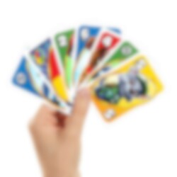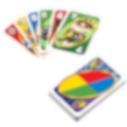 Pakkaus sisältää 112 korttia ja englanninkieliset pelisäännöt. Peliä voi pelata 3 kolmella eri tavalla, jotta lopulta lapsesi pystyy pelaamaan tavallista UNO-peliä.