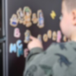 Leikkimällä kirjaimilla ja kuvioilla lapsi voi harjoitella muotojen tunnistamista, sanojen ääntämistä ja nimien rakentamista. Bluey on rakastettu Blue Heeler -pentu, joka muuttaa arjen hauskaksi kokemukseksi mielikuvituksen ja uteliaisuuden avulla. Tämän setin avulla jokaisesta hetkestä jääkaapilla tulee uusi seikkailu.
